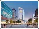 Opened in 2009, Three PNC plaza extended the company’s downtown Pittsburgh campus and expanded upon its award-winning commitment to green building practices. The 23 story building is one of the largest LEED® Certified™ mixed-use building in the United States, and includes a 4-star hotel, offices, condominiums and retail space. Adjacent to Three PNC Plaza, at the corner of 5th and Liberty Avenues, is PNC Triangle Park. Serving as a gateway to the city’s south entrance, the green space is an 8,000 square foot, pet-friendly park with bench seating and drought-resistant plantings.